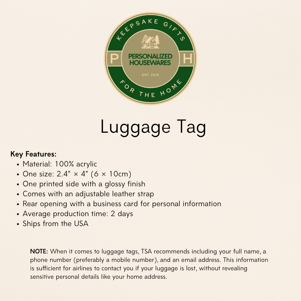 ✨ Travel in style with our exquisite acrylic luggage tag! Featuring a beautifully printed floral frame, this piece is perfect for adding a touch of elegance to any suitcase.