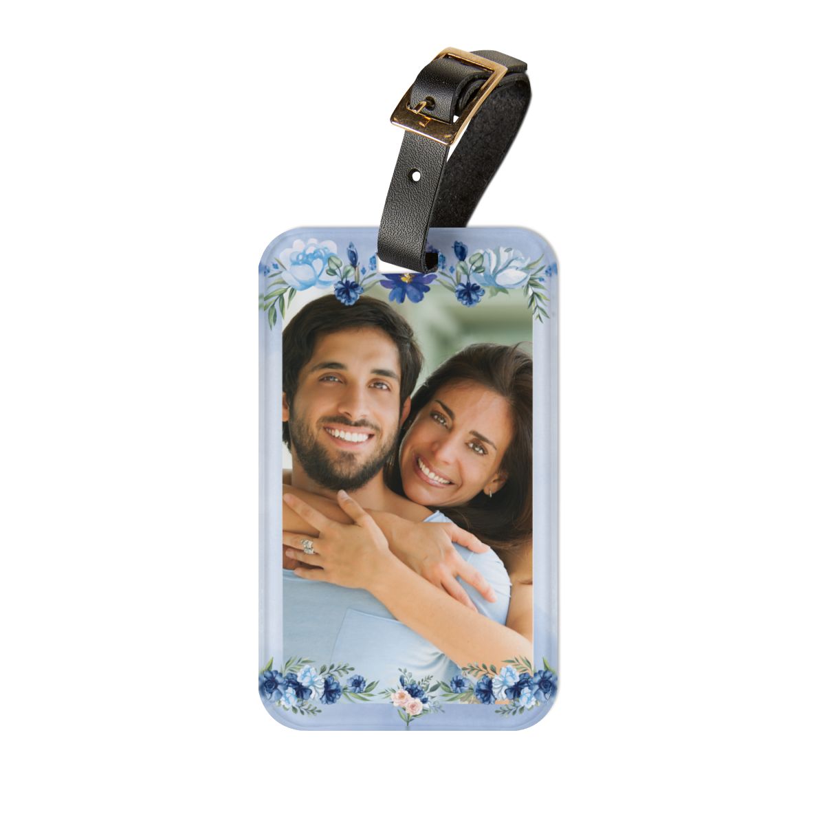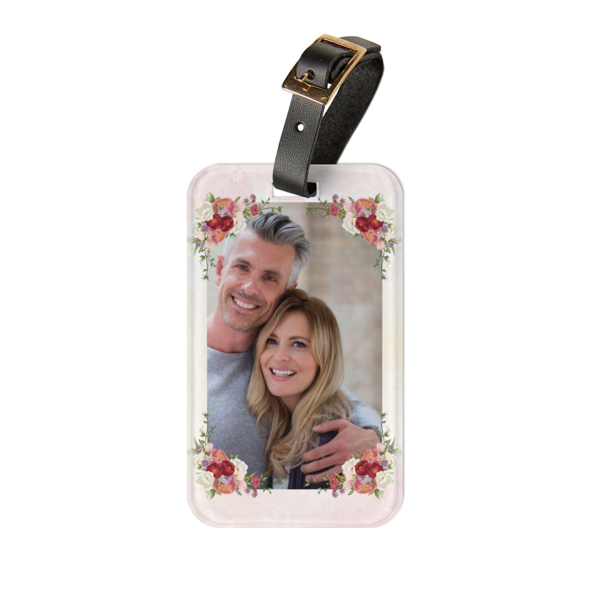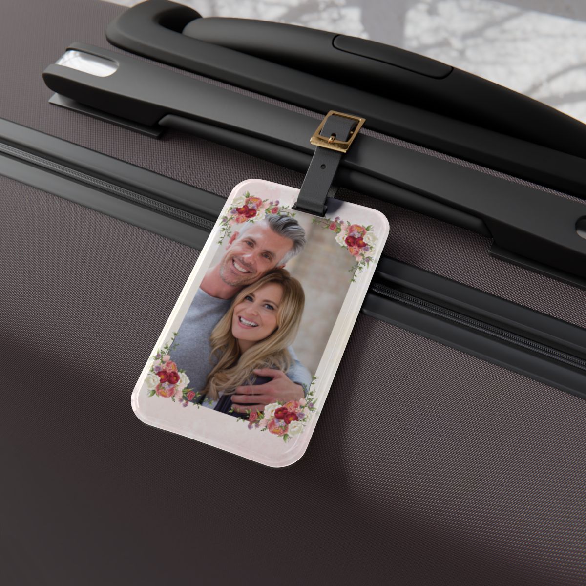 Acrylic Luggage Tag with Floral Frame, Personalized Travel Tag, Custom Photo Tag, Business Card Holder, Elegant Gift for Travelers