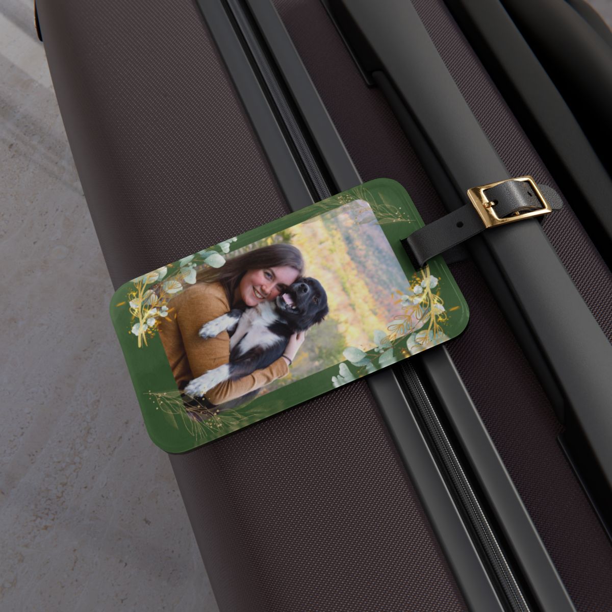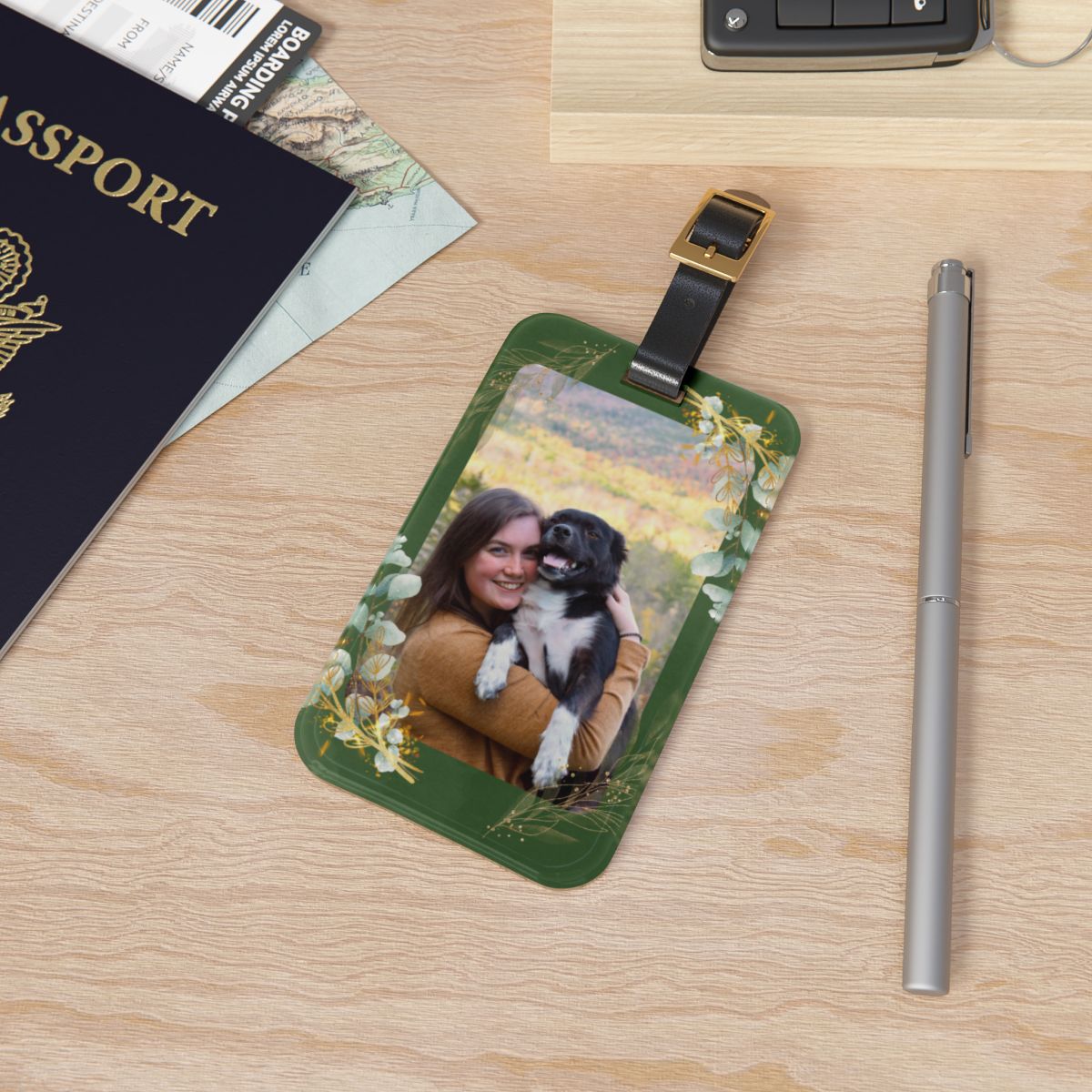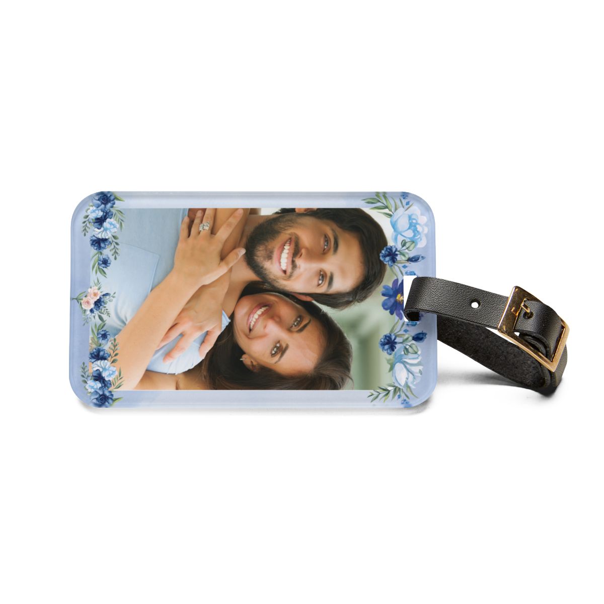 Acrylic Luggage Tag with Floral Frame, Personalized Travel Tag, Custom Photo Tag, Business Card Holder, Elegant Gift for Travelers