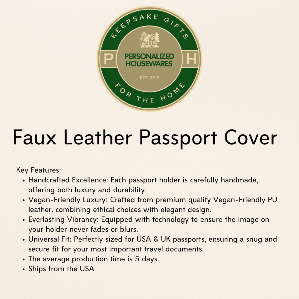 Personalized Passport Cover, Faux Leather Travel Accessory, Vegan-Friendly Passport Holder, Adventure Travel Gift, Custom Design, Stylish