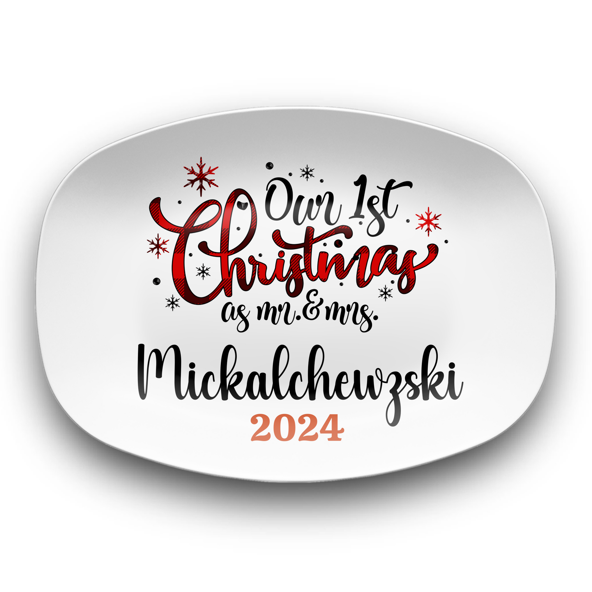 Our First Christmas As Mr & Mrs Personalized Family Name Serving Platter – Perfect for Holidays, BBQs, and More!