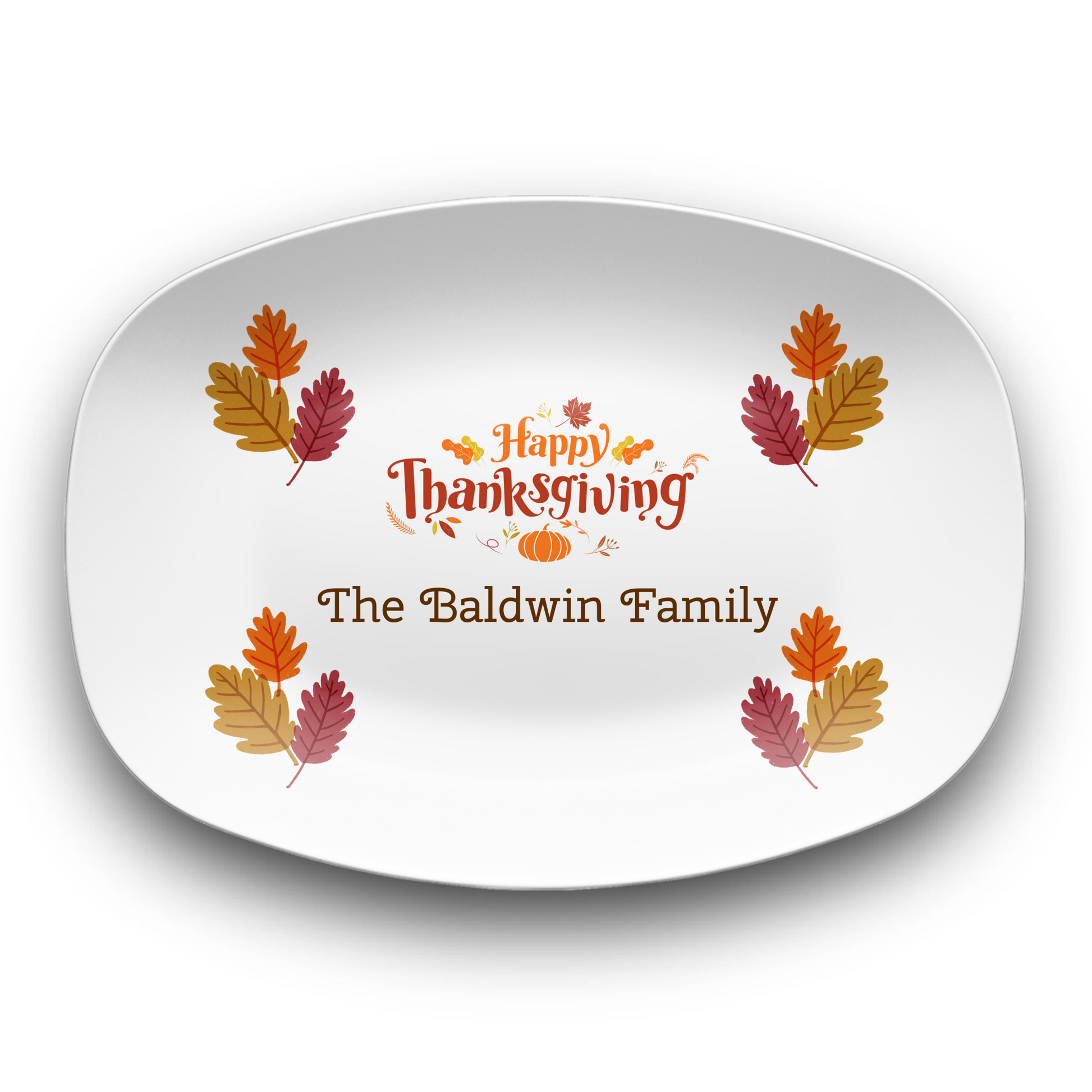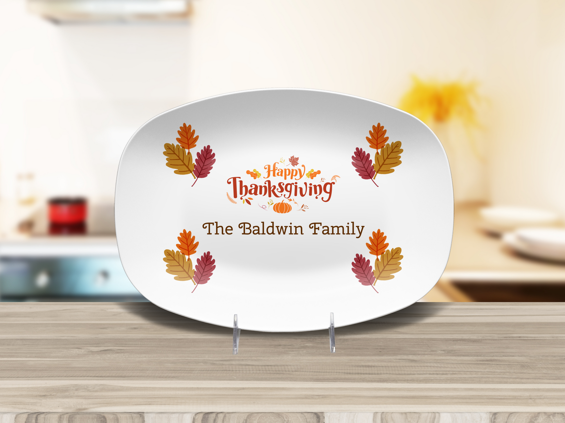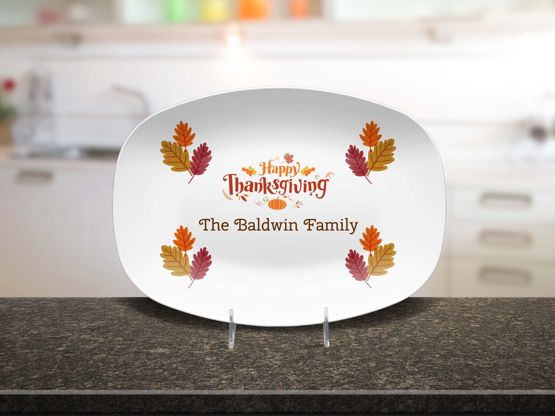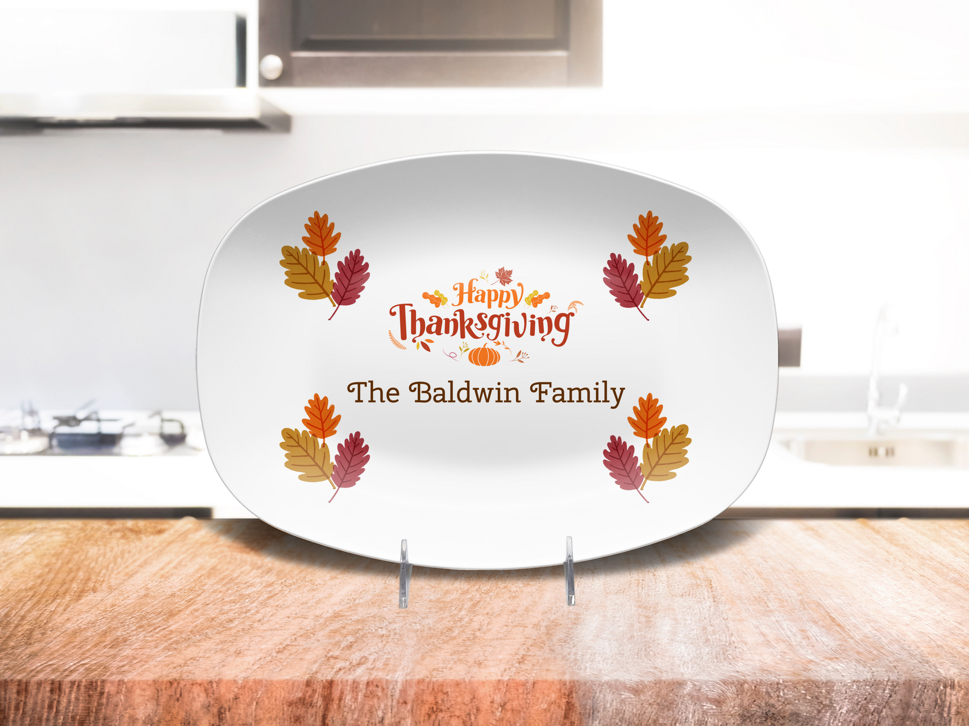 Happy Thanksgiving Personalized Family Name Serving Platter – Perfect for Holidays, BBQs, and More!