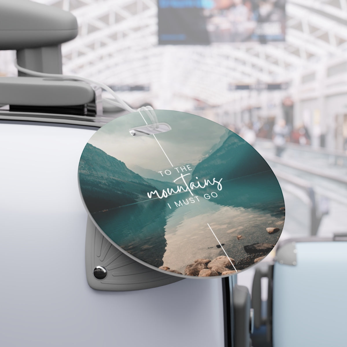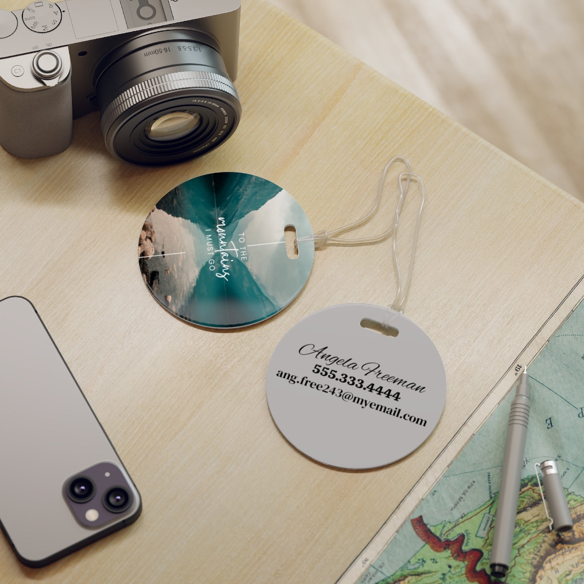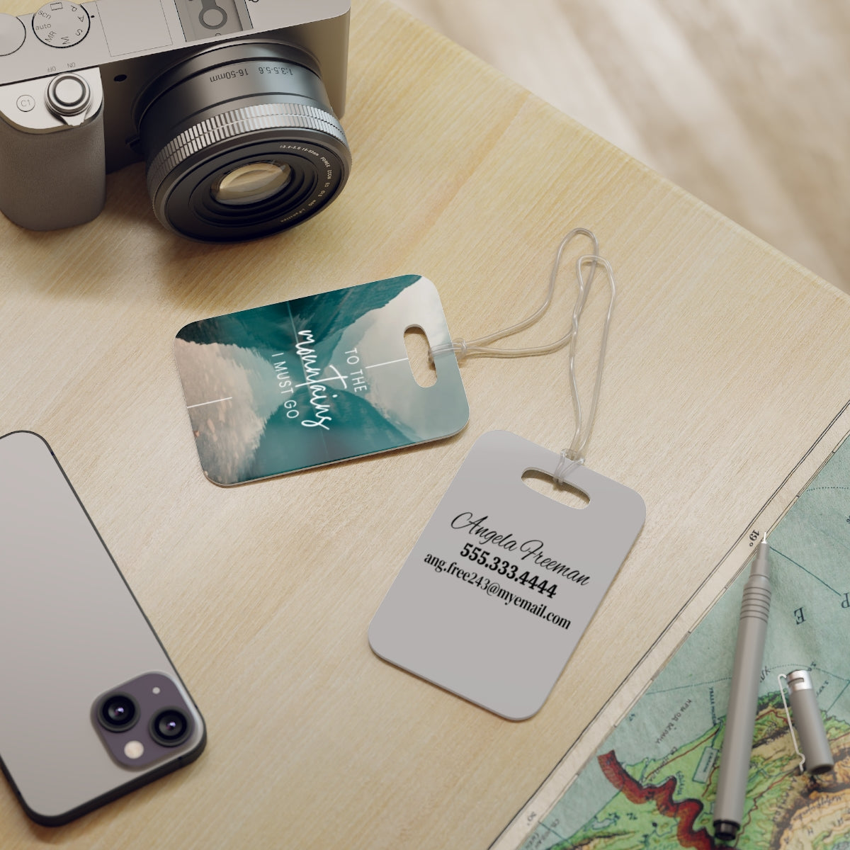 Mountain Travel Luggage Tag, Glossy Plastic Bag Tag, Double-Sided Print, Adventure Gift, Customizable Tags, Hiking Inspiration