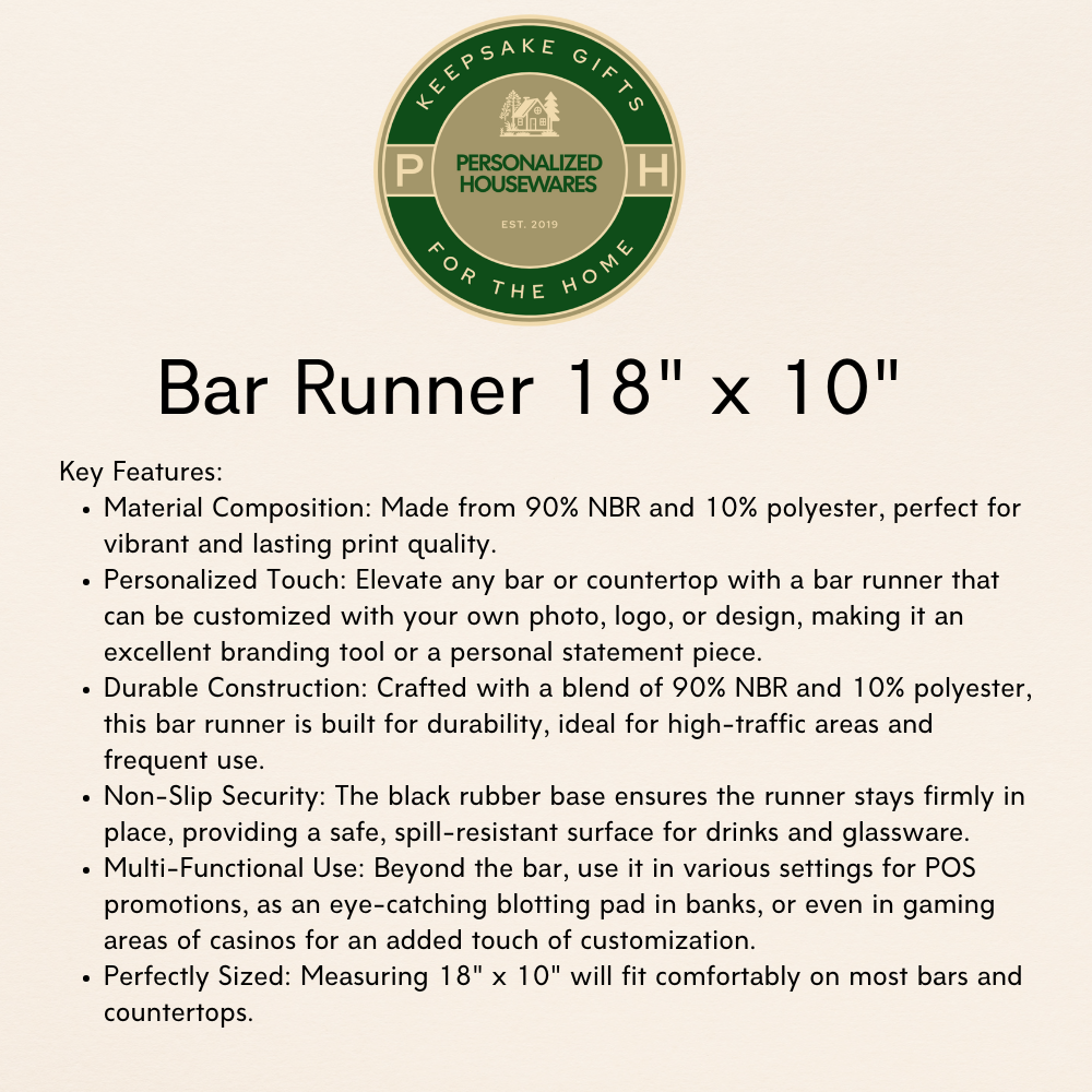 Whether celebrating Dad or hosting friends for a festive get-together, this personalized bar runner is a thoughtful gift and a stylish upgrade to any entertaining space. Crafted with care from 90% NBR and 10% polyester, it offers exceptional durability and print quality—ideal for showcasing your custom photo, logo, or design in vivid detail.