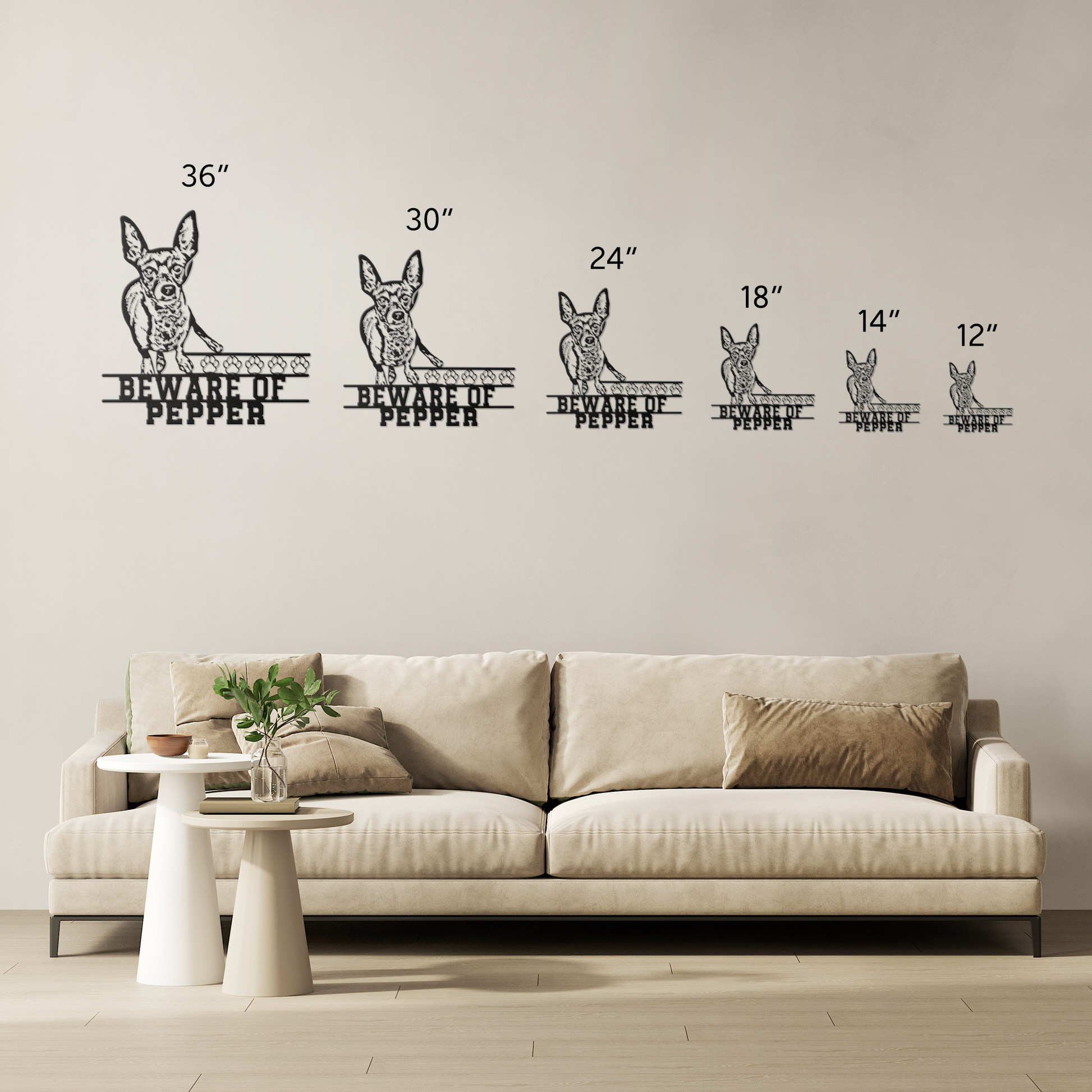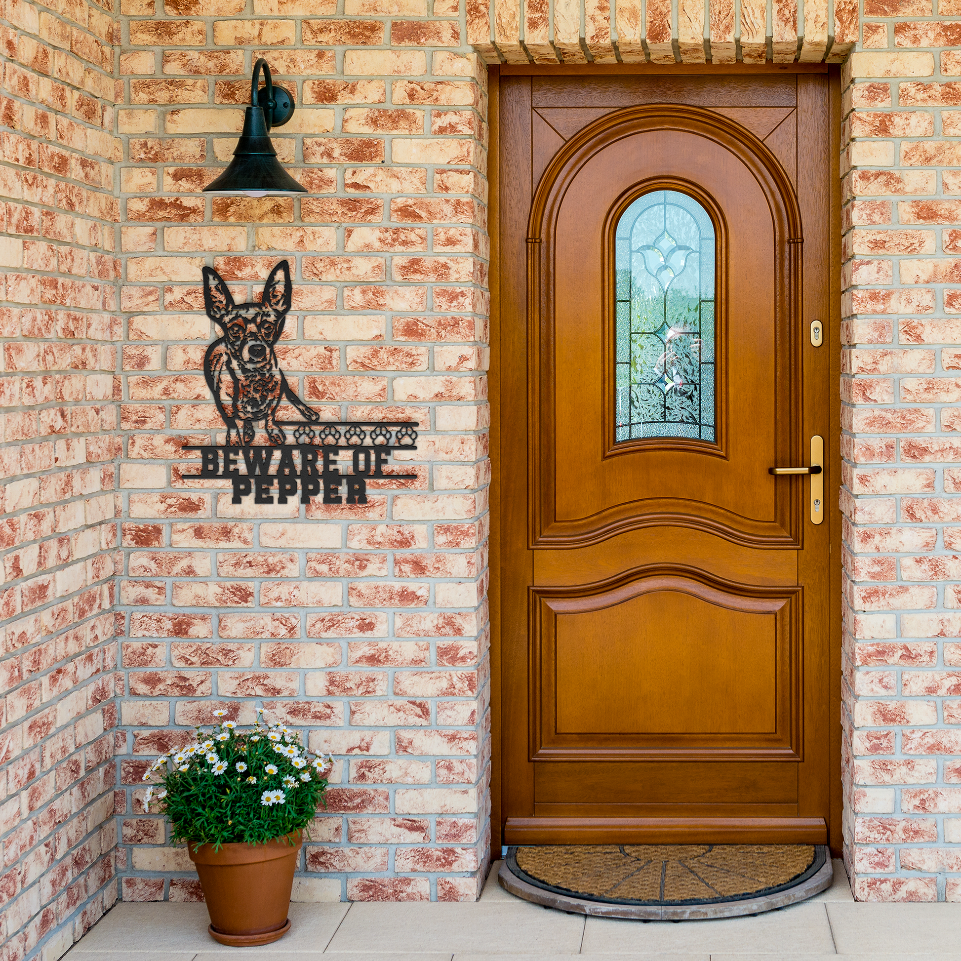 Personalized "Beware Of" Dog Breed Metal Dog Art—a stunning blend of style and function, perfect for Chihuahua dog lovers!