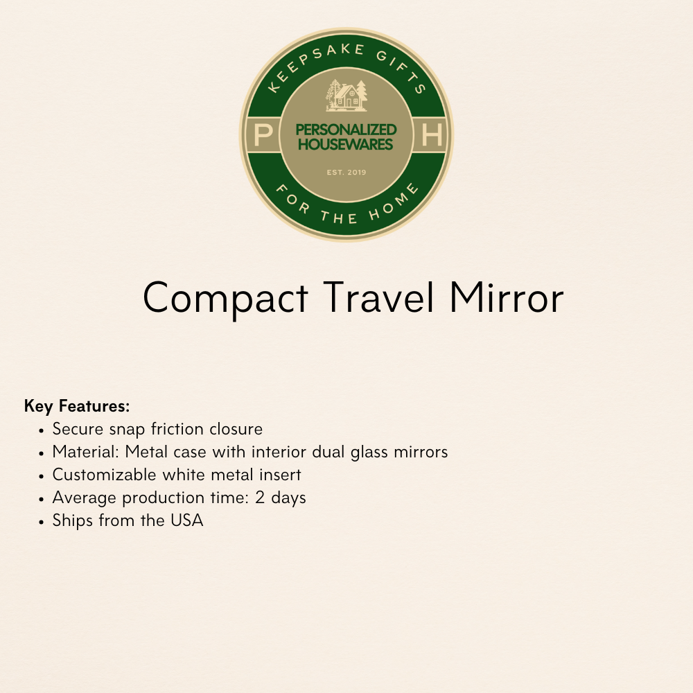 Whether it’s for yourself or a thoughtful gift for a friend, this personalized compact mirror is bound to impress. Make it yours today! 🎁