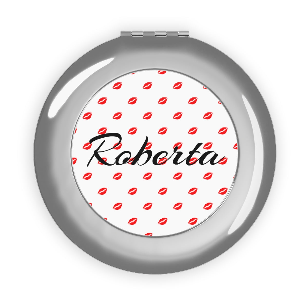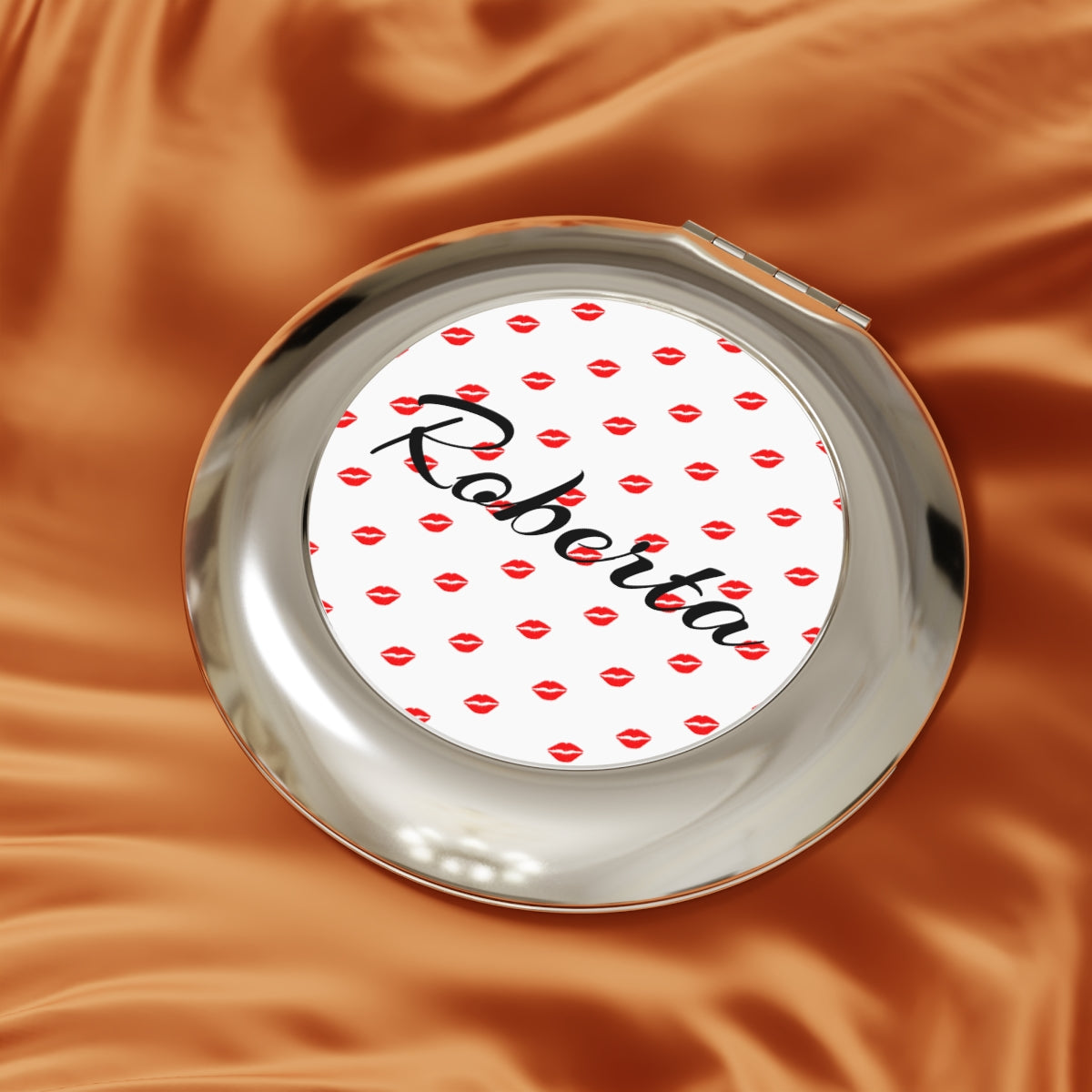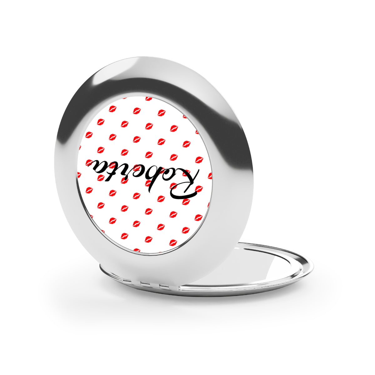 Personalized Compact Mirror with Kiss Pattern, Custom Travel Makeup Mirror, Cute and Shiny, Metal Finish, Gift for Her
