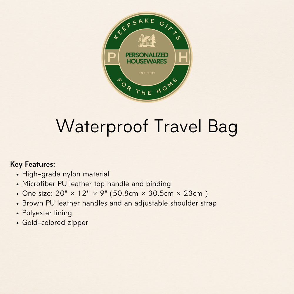 🌟 Elevate your travel style with this Personalized Travel Bag! Crafted from high-grade waterproof nylon, this bag is designed for durability and functionality, making it the ideal choice for your trips. The elegant brown body paired with gorgeous brown PU leather handles adds a touch of sophistication, ensuring you travel in style.