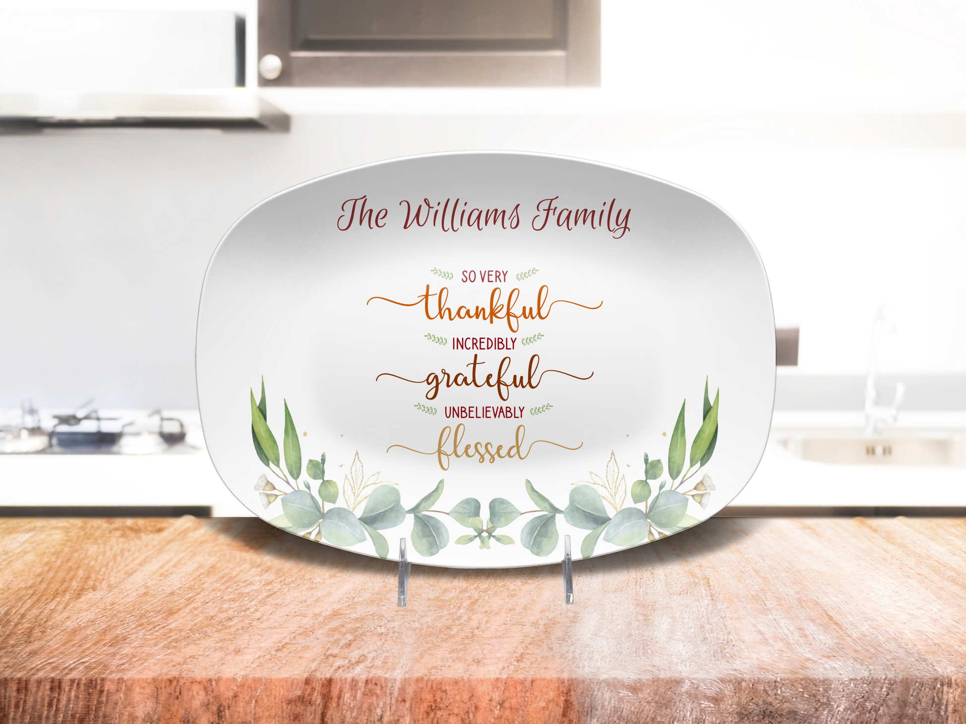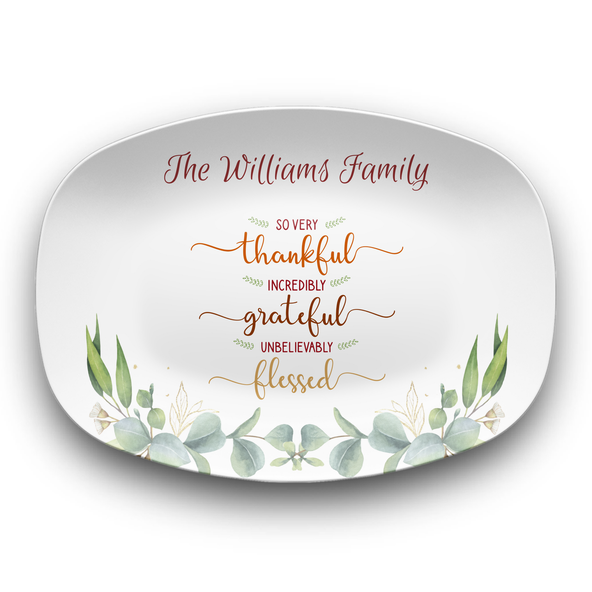 Thankful Grateful Blessed Personalized Family Name Serving Platter – Perfect for Holidays, BBQs, and More!