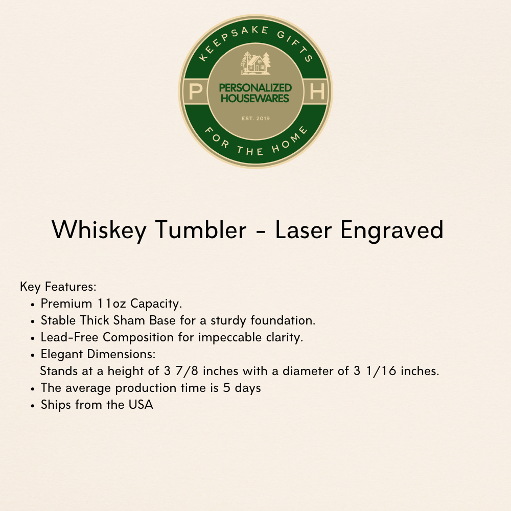Product Listing: Engraved Whiskey Tumbler - Personalized Drinkware for the Home Bar